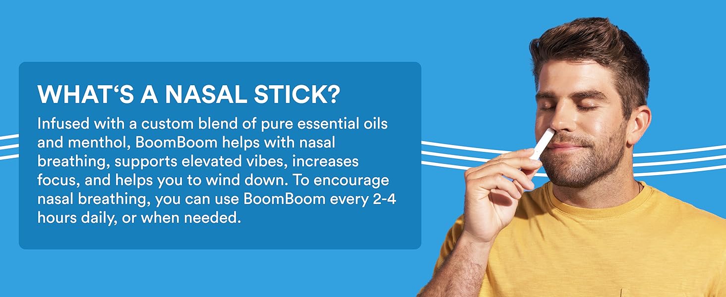 - YOUR EVERYDAY CARRY ESSENTIAL: Bathe. Brush. BoomBoom. Small enough to fit in your pocket, these nasal sticks are your go-to companion for better breathing anytime, anywhere. Whether you're crushing your workout, powering through study sessions, or just living life to the fullest.